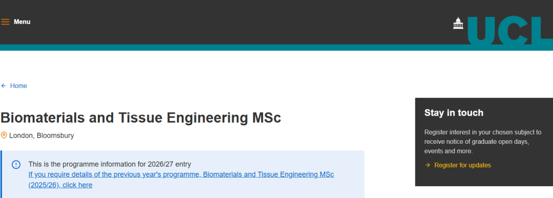 伦敦大学学院生物材料与组织工程硕士Offer展示