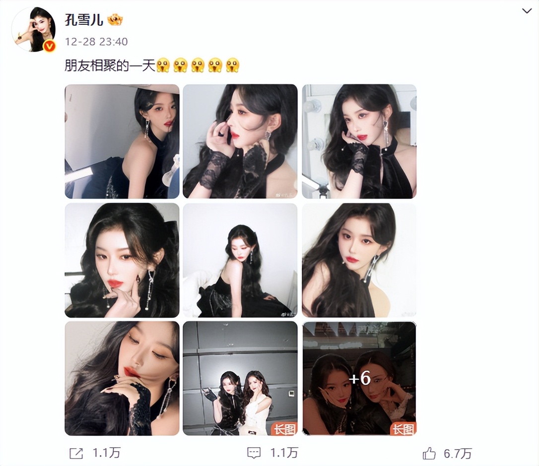 这天这天聚了不少朋友,挤在一块儿的身影、凑得很近的笑脸,连灯光都裹着热闹的暖。孔雪儿虽然没说多华丽的话,可从第一张的精致到最后一张的热闹,全是 “和喜欢的人待着” 的踏实开心。