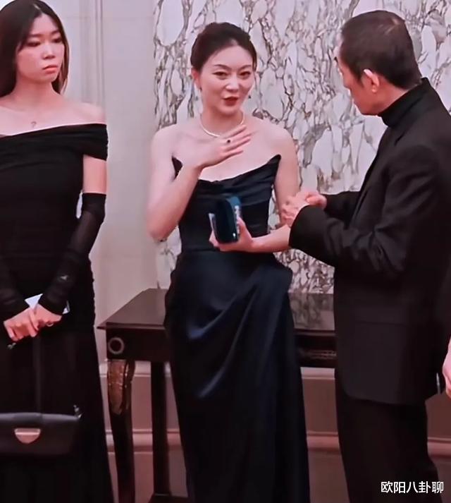 当天,陈婷身着黑色抹胸礼服,光彩夺目,她肤色白皙,仿佛能映照出周遭的光芒,整个人显得格外亮丽,引人注目。