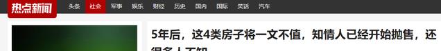 【1】热点新闻网2024-11-26《5年后,这4类房子将一文不值,知情人已经开始抛售,还很多人不知》