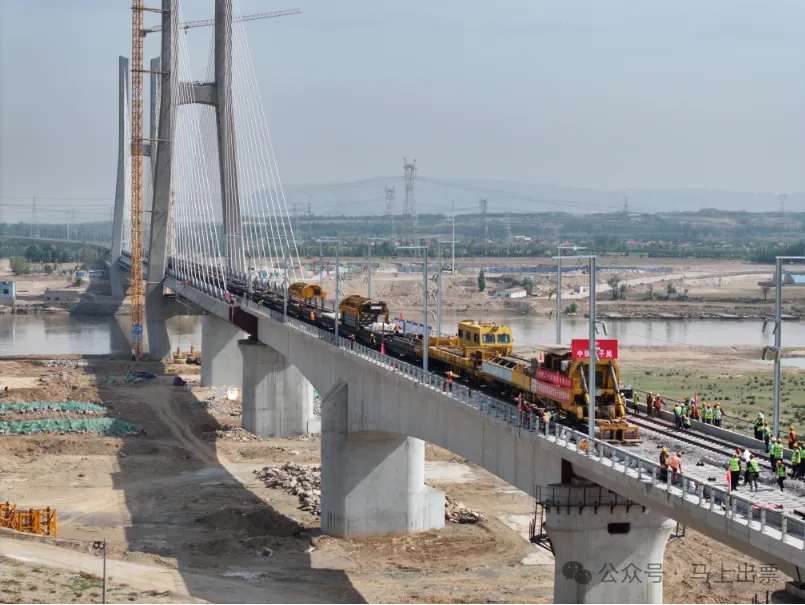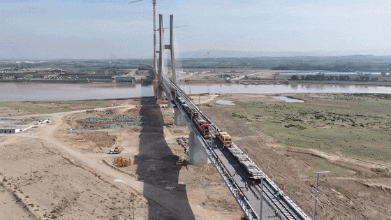 面对河套平原盐渍土质与黄河峡谷的复杂地质,建设者采用我国自主研发的BLCP500和CPG500型铺轨机组,通过北斗导航定位与激光传感技术实现毫米级布枕精度,在每秒15米横风中创造日均6公里的铺轨速度,这项"黄河上的毫米级工程"诠释了中国高铁的硬核实力。