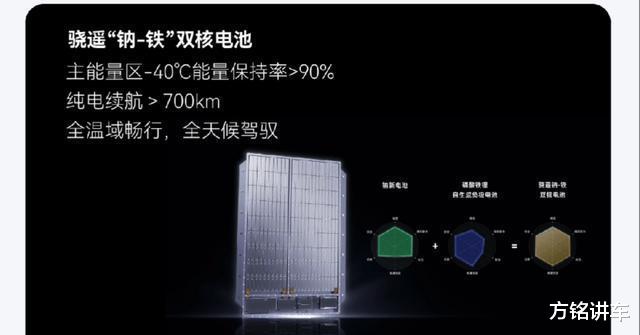 骁遥“钠-铁”双核电池: 零下40度,能量保持率90%以上,续航突破700公里。