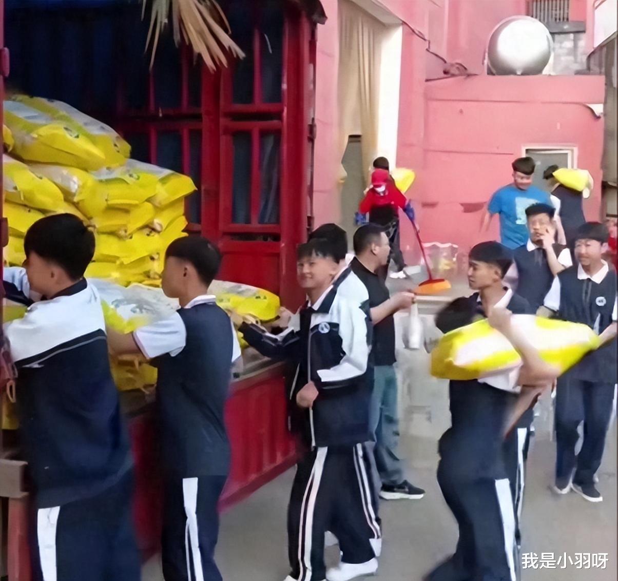 可现在,有一所学校让学生帮忙把大米搬到食堂,却引起了好多争议。