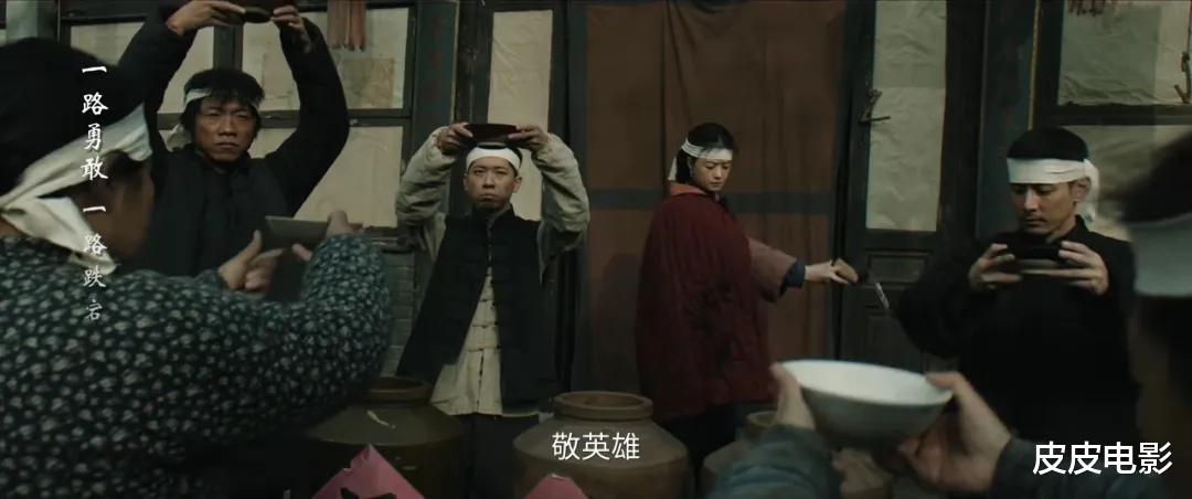 当她带领百姓在酒馆门口祭奠杨靖宇,一起敬酒、一起摔碗时,她的转变,在此处变得清晰可见。