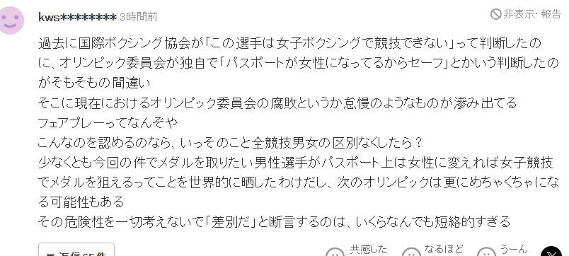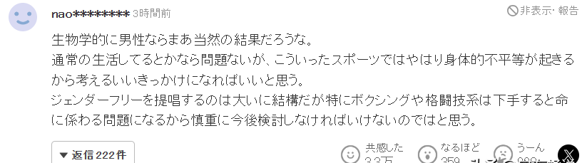 值得一提的是,日本媒体对于哈利夫的报道更是引起了广泛关注。日本网友在评论中纷纷表示支持哈利夫追求自己的梦想,同时也对性别歧视问题提出了质疑和反思。他们认为,在竞技体育中应该更加注重公平竞争和运动员的实际能力,而不是仅仅根据性别来划分比赛项目。