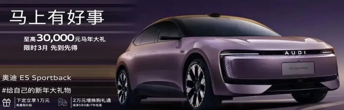上汽奥迪旗下首款纯电车型AUDI E5 Sportback,2025年9月才上市,至今不过5个月,就宣布综合优惠最高3万元,起售价下探至20.59万元。豪华品牌新车这么快就“官降”,实属罕见。