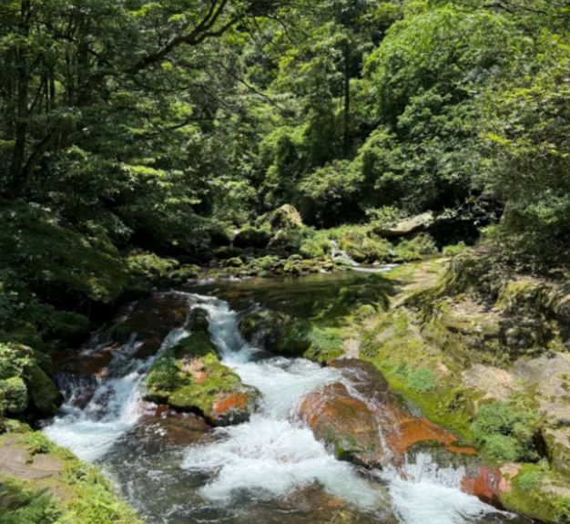 步入峡谷,首先映入眼帘的是茂密的植被。溪谷两岸覆盖着亚热带常绿阔叶林,植被层次丰富,光线在林间显得柔和而斑驳。沿着石板游道前行,溪流始终相伴左右,溪水清澈见底,在阳光照射下闪烁着粼粼波光。水流时而湍急,冲击岩石激起白色水花;时而平缓,形成浅浅的潭水,水底的鹅卵石和游动的鱼儿清晰可见。