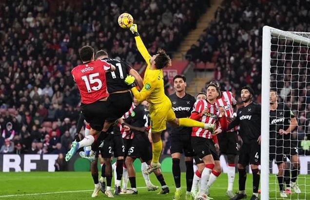 西汉姆门将卢卡斯·法比安斯基在比赛中头部受伤,场面令人揪心,他随后被担架抬下场。