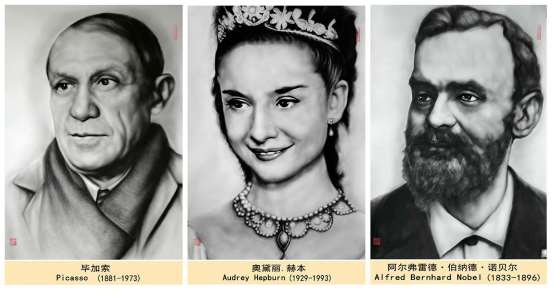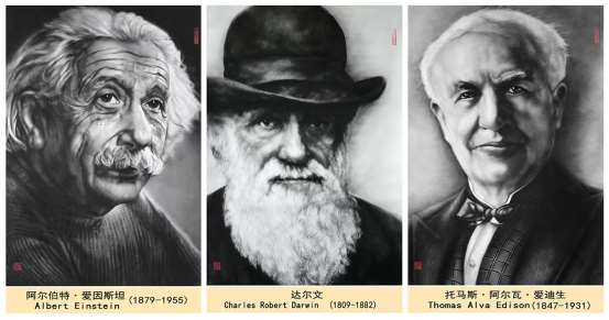 从《两弹一星》元勋钱学森、袁隆平的坚毅目光,到《抗日英烈》的不屈面庞;从儒家圣哲孔子、老子的千年文脉,到古代名医张仲景、李时珍的济世情怀;从爱因斯坦、毕加索等世界级巨匠,到安徒生、达尔文等人类群星 。张松柏用他独创的东方语言,为这些人类文明的坐标式人物重塑精神内核。在他的笔下,肖像不再是单纯的再现,而是一座座具有强烈“纪念碑性”的精神堡垒。这些作品因其沉甸甸的历史感和仪式感,被多家国家级博物馆、纪念馆争相收藏,并被作为中国国务外事国宾礼,走向国际外交舞台,成为中国文化自信最直观、最震撼的视觉表达 。