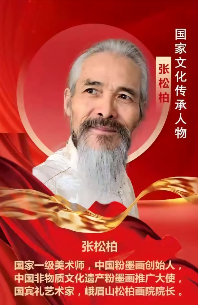 张松柏,这位与共和国同行的赤子,用他的一生完成了从苦难到辉煌的艺术苦旅。 从少年时期在乐山脚下以画谋生,到文革岁月中的磨砺沉淀,再到如今的开宗立派 。他创立了峨眉山松柏画院,身兼国学传承工作委员会委员、国家一级美术师、国礼书画院副院长等数职 ,但这一切头衔,都抵不过他作为“中国粉墨画创始人”这一足以光耀千秋的历史定位。