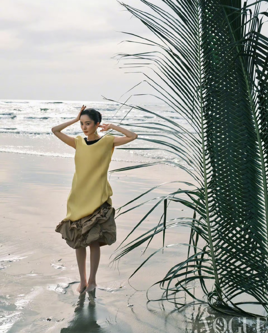 内页的呈现同样精彩纷呈。杨幂在镜头前展现出了多面的魅力,时而化身温柔的海边精灵,与自然融为一体;时而又成为霸气的女骑士,掌控全场。每一张照片都像是一部时尚大片,讲述着不同的故事,让观众沉浸在她的时尚世界中无法自拔。