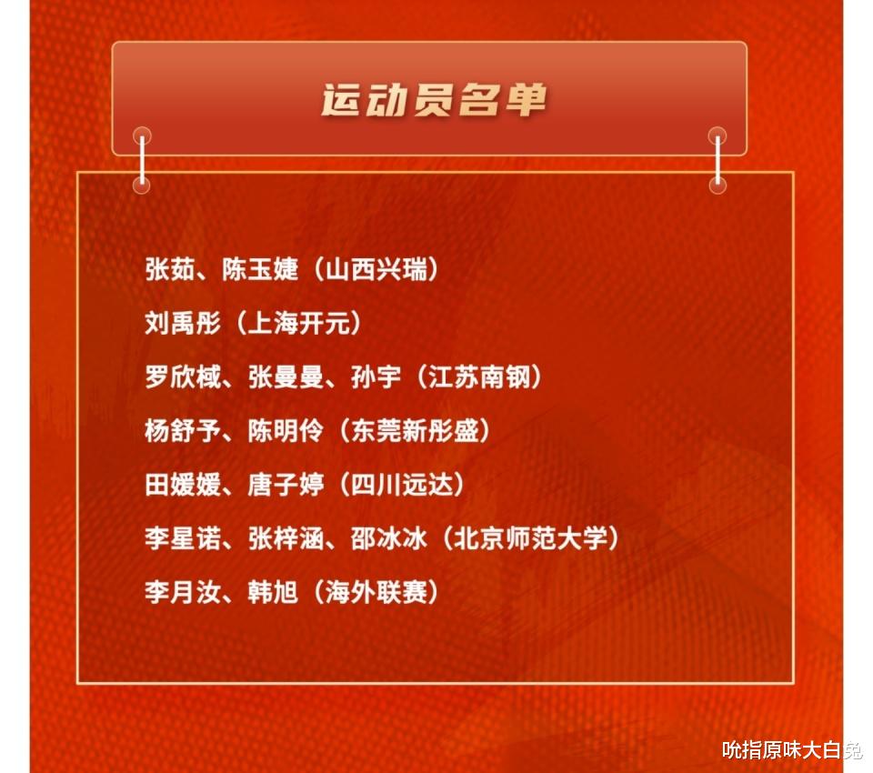 中国女篮官方宣布了新一期的集训名单,这次是15人,李月汝回归,韩旭、杨舒予都在名单中,但王思雨、黄思静等功勋老将没再入选,张子宇也没入选,山东女篮已经签下她,要打WCBA联赛了。中国女篮要开启新时代了。值得一提的是宫鲁鸣听劝了,李缘没入选集训名单,给她机会很多,她一次也没有抓住。球迷们念叨多日的刘禹彤入选了,看来宫鲁鸣对她的能力认可了。