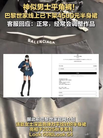 可神奇的是,这裙子在巴黎世家小程序居然还缺货了!难道真的有冤种姐妹觉得,只要加上Balenciaga的logo,平角短裤就能秒变时尚单品?
