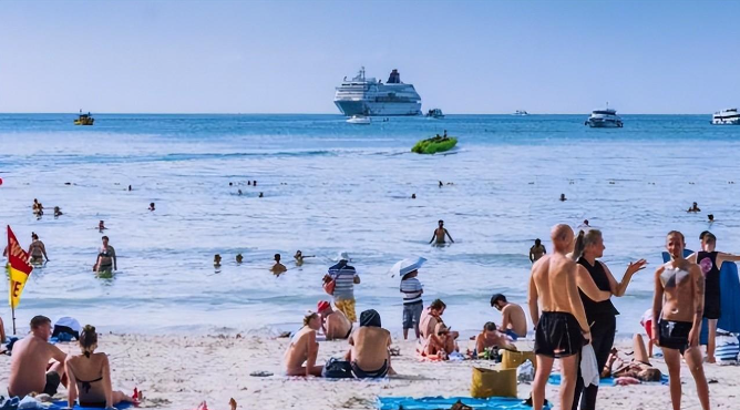 在这里有长达2公里的天然海滩,人们在这里游玩十分地惬意舒服。