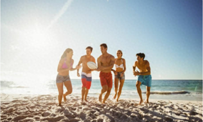 人们在热带海滩上唱歌跳舞,热情狂欢,欲罢不能。