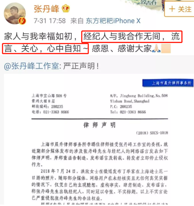 表面上看,洪欣是在为自己的婚姻辩护,可是,她是不是真的赢了?不,并没有。不久后,毕滢重新回到了张丹峰身边,依然是经纪人的身份,而洪欣却在2019年4月就被人发现,悄悄的再次关注了毕滢。