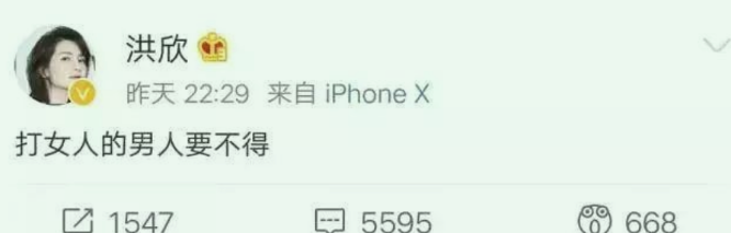 洪欣一直在隐忍,一直在帮他们收拾烂摊子,得到的却是这样的结果,不过,她并没有反驳,只是默默地承受着。在2018年10月3号晚上,她发表了:打女人的男人要不得。大家都在想,张丹峰到底是不是家暴了?洪欣再次站了起来,为其辩解。她说自己在网上看到了一条消息,就发了这九个字。