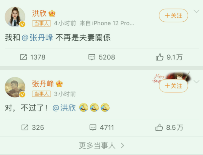 日前,洪欣和张丹峰正式宣布两人已离婚。不过,这份公告的形式很诡异,先是在内容上,没有经过任何修饰,只是一句情绪激动的话,似乎并不是很正式。两个人都没有说要照顾孩子,一点互相之间的感激都不曾展现,更不想为彼此保留尊严。那事情到底是什么样子的?看起来就好像一个绝望的人,摊开双手,说:“好了,就这样吧,让这个世界毁灭吧!”并且连续发了三次。