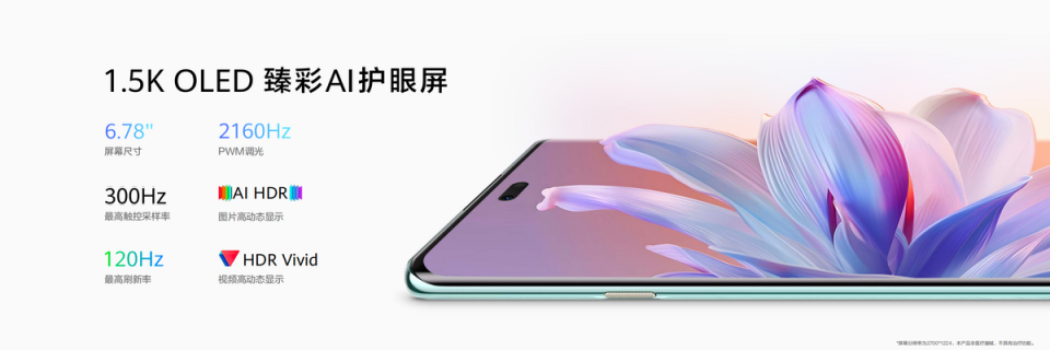 华为畅享 70X配备畅享系列首款1.5K双曲OLED臻彩屏, 437 ppi像素密度,1200nit全局亮度,支持P3广色域覆盖,画质细腻,色彩饱满。同时通过软硬件配合,提升夜间的屏幕光线调节能力,更加适应使用环境,视觉体验更加舒适。