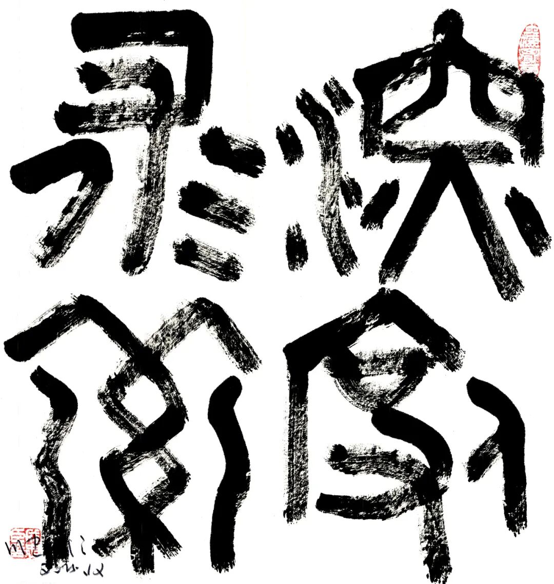 说到底,书法的笔墨实践是对宇宙规律的微观模拟。在纸间处理这六大矛盾,实则是练习用哲学思维应对世间复杂关系——用恰当的力量,循规律又超规则,让笔墨气韵成为生命气韵的书写。而如何让古老传统重获新生?成忠臣所探求的仙书,正是植根于古文字结构的解构与重构,挣脱后世技法桎梏,让笔墨回归文字初创的质朴灵动,直追天地自然本真,让书法境界从“技书”迈向“仙书”。这份毕生追求,既是他对“书法为何要创造”的终极回应,也是书法给予世人最极致的哲学馈赠。