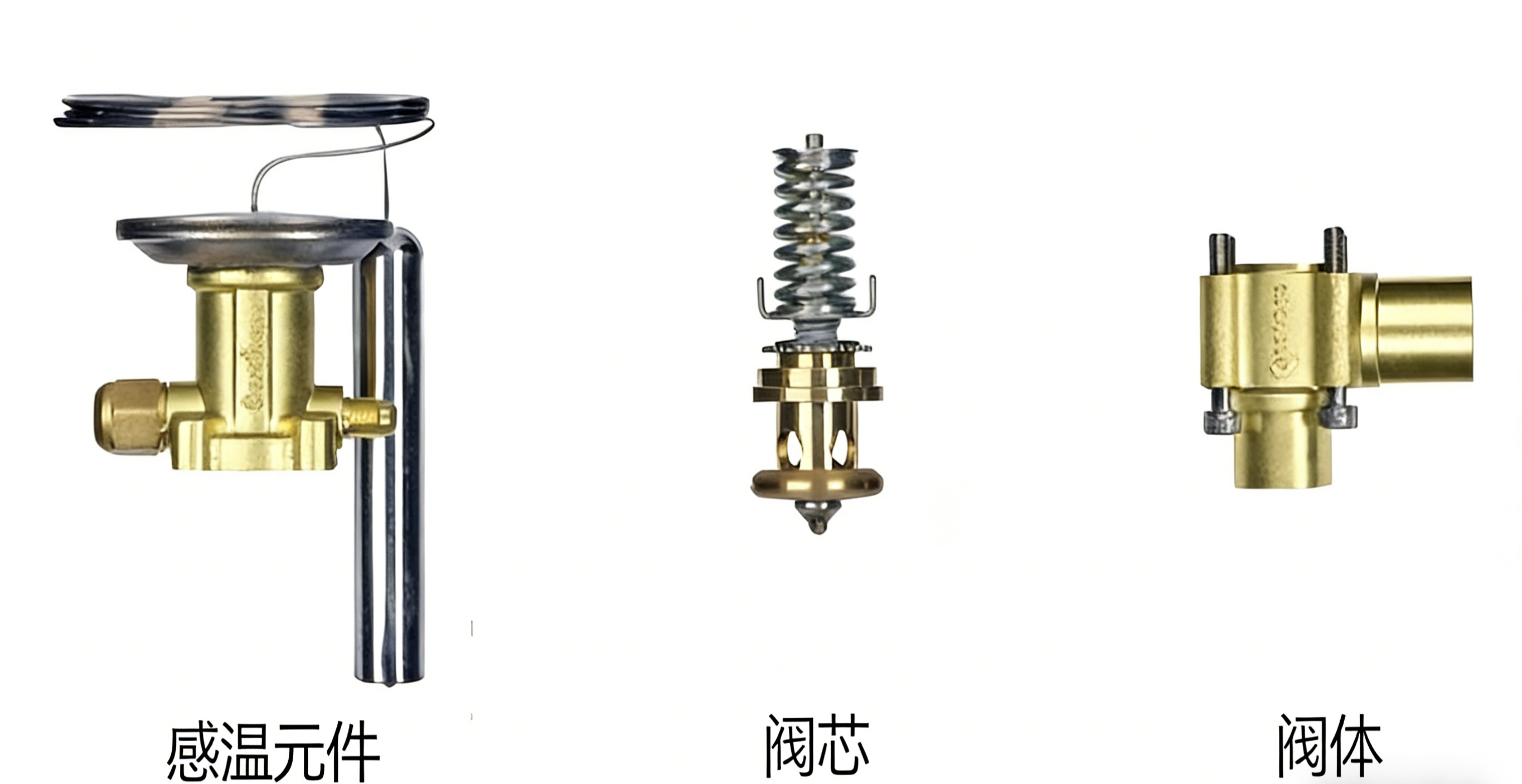 其工作原理基于感温包压力、蒸发压力与弹簧力的动态平衡: