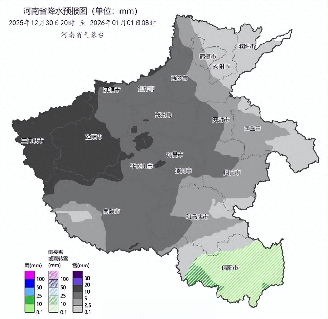特别是郑州的朋友要注意,之前的预报可能还是小雪或雨夹雪,但最新的气象资料显示,郑州的预报已经转为中雪。这场雪的“主力”时段,将集中在12月31日下午到2026年1月1日上午,特别是31日傍晚到夜里,雪势最强。