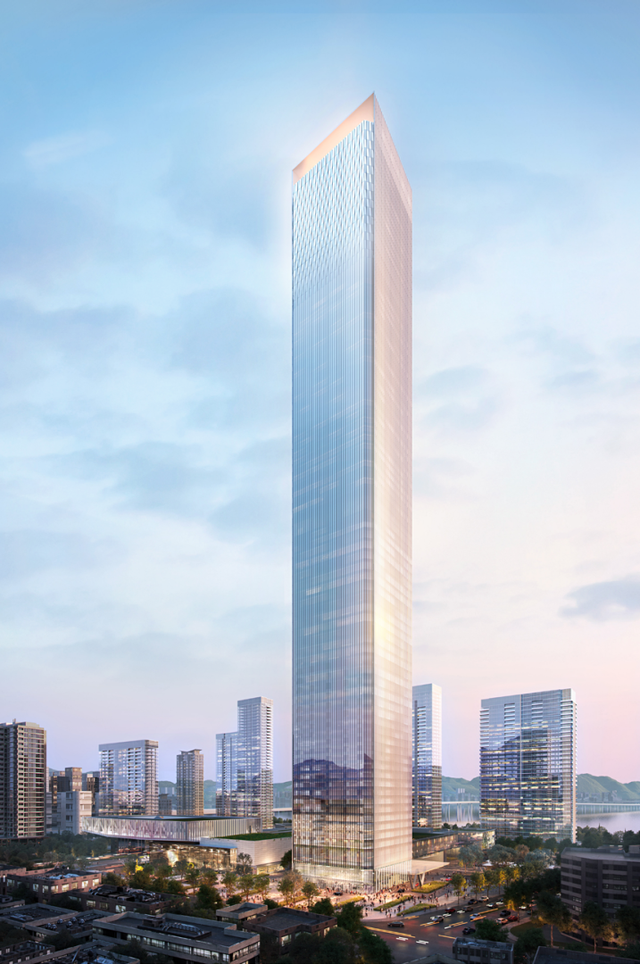 值得一提的是,这座塔楼的建造过程在国内可谓颇为独特。与许多超高层建筑因故降低规划高度的情况不同,温州鹿城广场的设计高度却历经多次上调。最初在2007年规划为350米,随后在2020年官方宣布增至369米,至2021年又调整为379米。直到2024年,其高度再次提升,从379米增加至389米,也因此成为温州市未来的第二高楼。