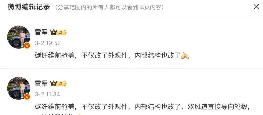 面对此次舆论危机,小米汽车终于在5月7日发布了致歉声明,表示将采取补偿措施,并试图解释碳纤维双风道前舱盖的功能。然而,很多车主对补偿方案并不满意。小米提供的2万元积分补偿,和他们所付出的4.2万元选装费用相比显得微不足道。更何况,改配铝制机盖的时间周期长达30至40周,大多数车主认为这失去了购车的意义。
