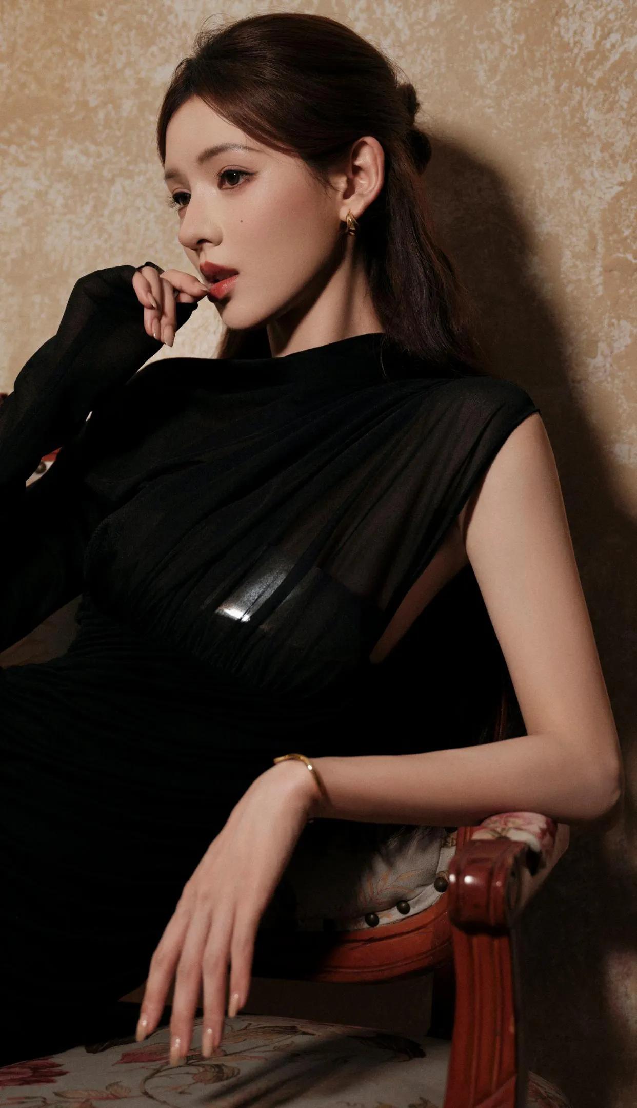 张予曦的红唇黑裙,优雅与性感的完美结合!