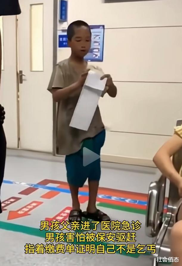 视频显示,小男孩衣服略显破旧,手里紧紧攥着长长的药费单,面对保安的询问,眼神中透露出紧张与无奈。小男孩激动地解释,自己并非乞丐,而是来陪父亲看病的,裤子反着穿是因为里面装着父亲的救命钱,生怕丢失。周围群众纷纷围过来,了解情况后,大家对小男孩的遭遇表示同情。