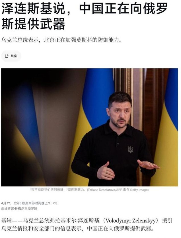 泽连斯基宣称中国正直接向俄提供军援,中方驳斥!——环球时报