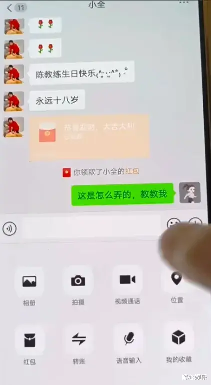 她给陈教练发了一个红包,上面还标着“520”,听起来像是个大红包,挺让人期待的。