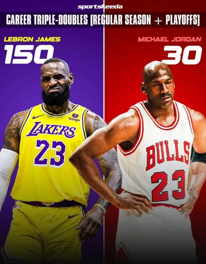 时代变迁也影响了球员的生涯长度。詹姆斯得益于现代运动科学和医疗条件,保持了长达20多年的职业生涯,这在乔丹时代几乎无法想象。约翰·斯托克顿这样评价两人的差异:“看勒布朗打球和看乔丹打球是截然不同的体验。勒布朗的比赛充满身体对抗,他大量依靠力量突破篮下,这是我们习以为常的风格。”