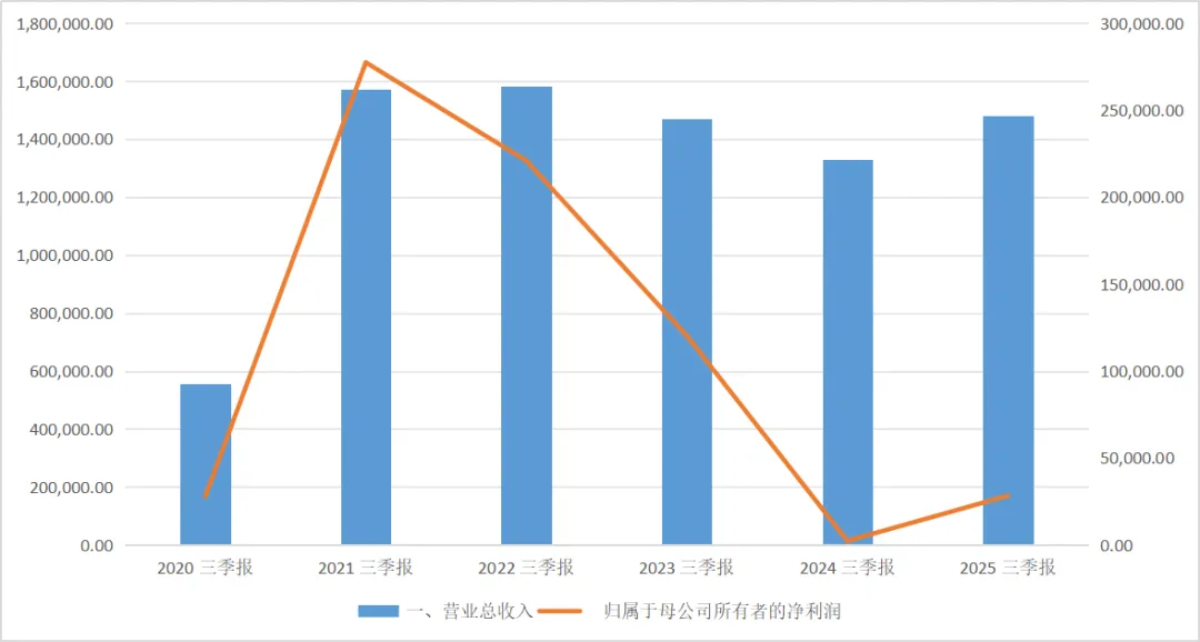 2025年三季报显示,公司实现营业总收入148.09亿元,同比增长11.48%;归母净利润2.84亿元,同比大幅增长1121.72%;扣非净利润2.23亿元,同比增长512.94%。