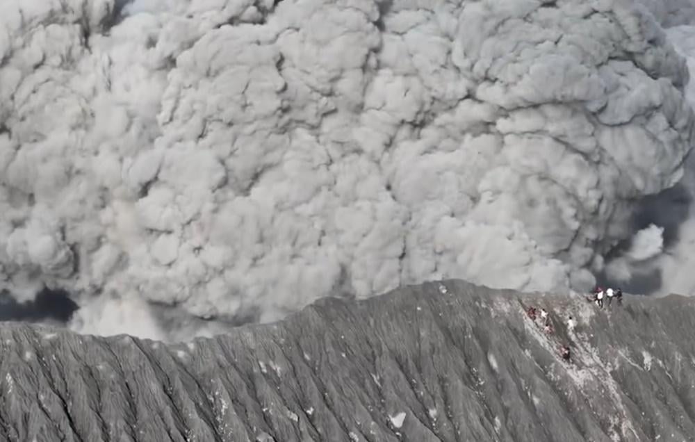 为了追求极限挑战或绝美景色,不少登山客选择冒险攀登活火山。上周六(17日),印尼杜科诺(Dukono)火山再度爆发,喷出的火山灰柱高达2400米。无人机记录下了惊险的一幕:十多名登山客在火山口附近,突然意识到危险来临,立即掉头冲下山逃生。画面震撼人心,令人屏息凝神。