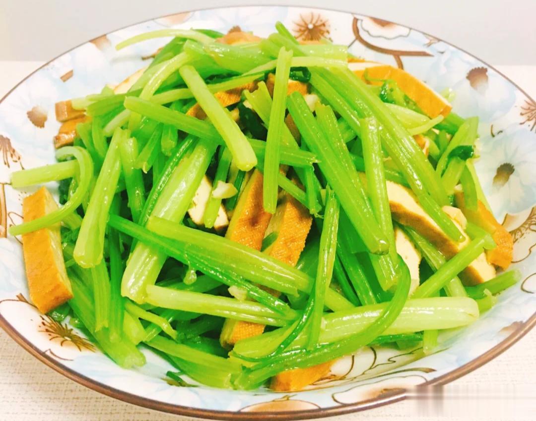 食材:芹菜、豆干、蒜、生抽、盐、鸡精、食用油