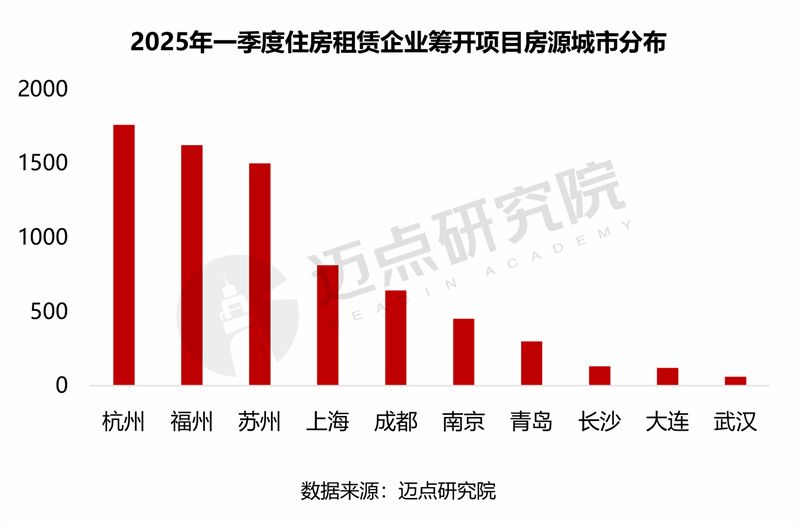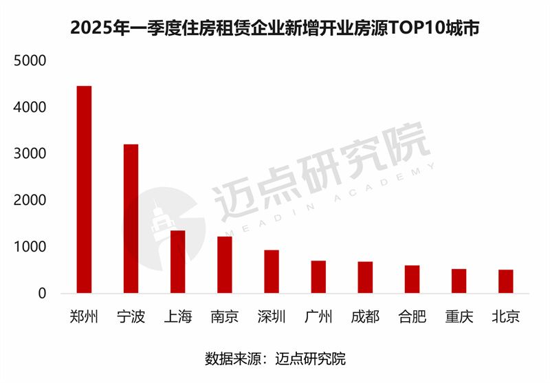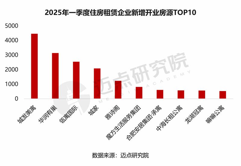 据迈点研究院不完全统计,2025年一季度,住房租赁企业新增开业项目房源约1.73万间,其中城发美寓、华润有巢和瓴寓国际新增开业项目房源位居前三。