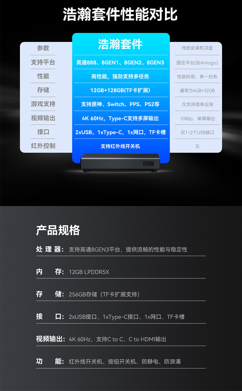 该产品被定义为世界首款搭载高通骁龙8 Gen3旗舰芯片的游戏盒子套件,其安兔兔跑分高达200万分,不仅将安卓盒子的性能推向前所未有的高度,更通过一体化的专业设计与标准化的生产流程,彻底解决了DIY改装市场长期存在的品质与可靠性痛点,为全球智能设备爱好者和游戏玩家带来了一个兼具极致性能与高度可靠的全新选择。