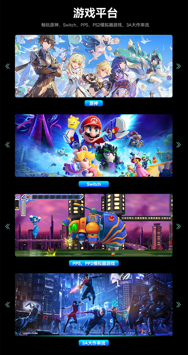 ● 3A大作串流: 支持PC/主机端的3A大作串流,配合低延迟网络,在安卓端也能享受媲美主机的游戏画面与操作。