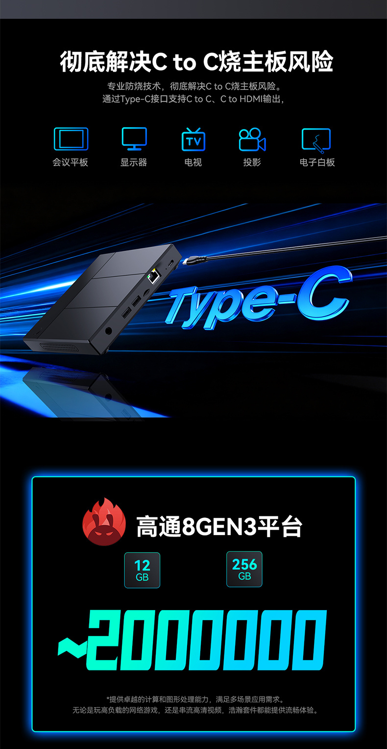 1. 专业防烧技术: 彻底解决了DIY市场普遍存在的Type-C to C数据线烧毁主板的风险,同时支持C to HDMI视频输出,连接更安心。