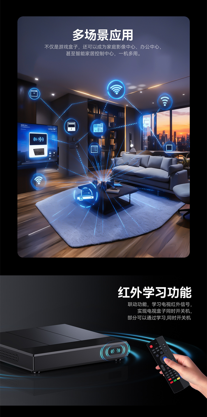 10. 多场景应用: 不仅是游戏盒子,更可成为家庭影音中心、轻办公终端甚至智能家居控制中心,一机多用。