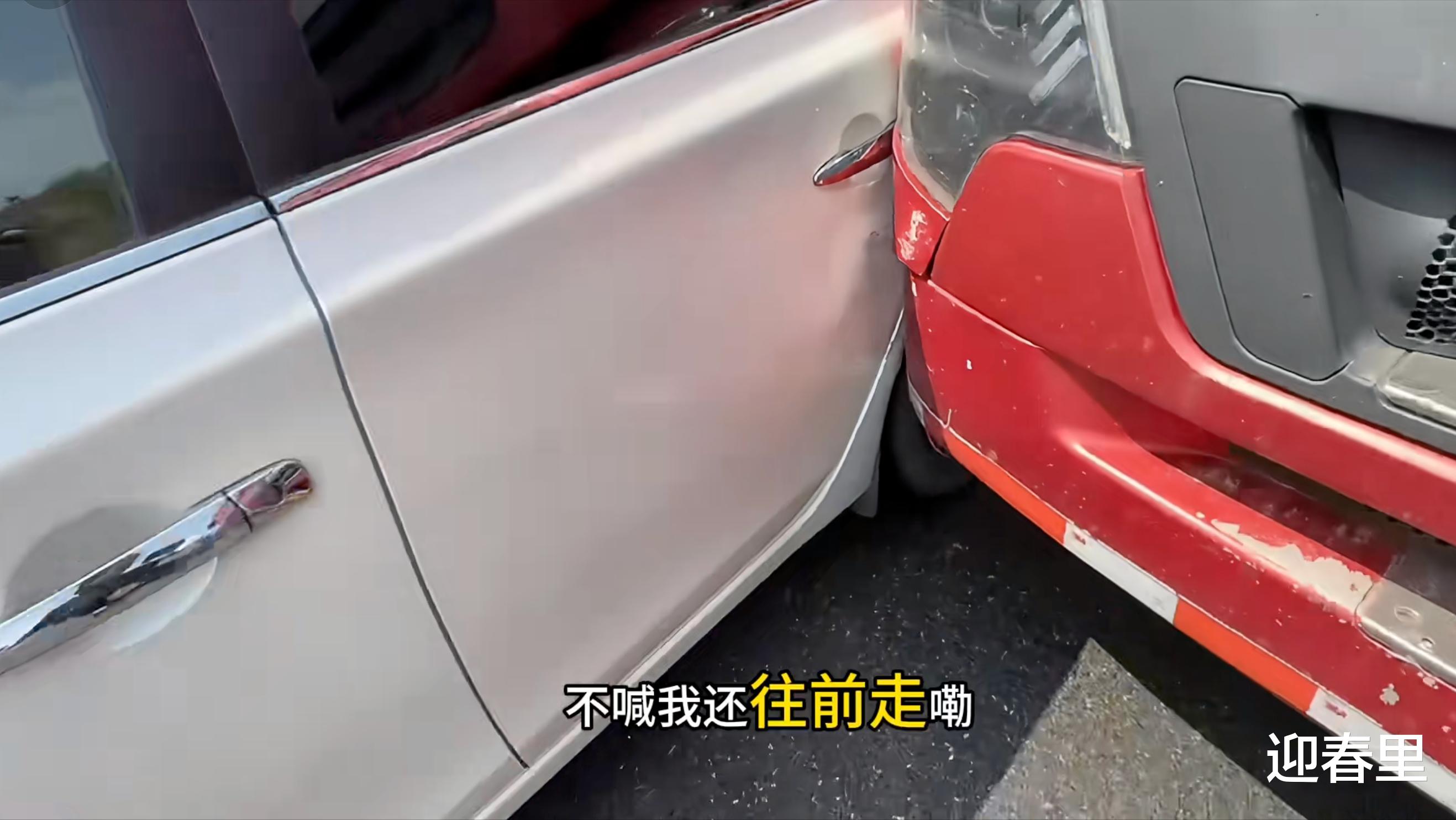 既然不同意,那就只能奉陪到底,结果货车在挪车的时候,小车突然自己动了起来,原来司机下车的时候都没有拉手刹,之前一直靠货车顶着才没有动。