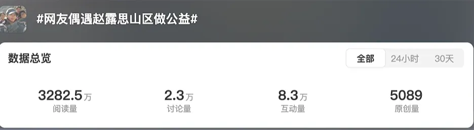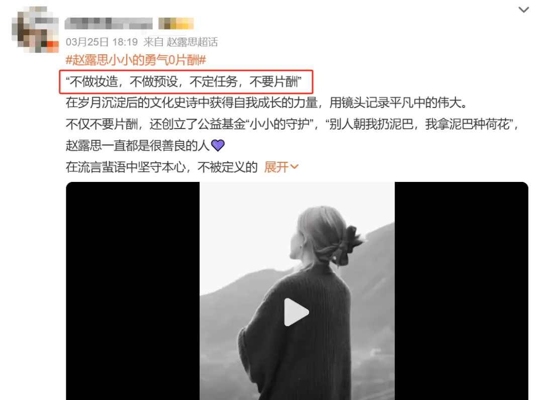 在赵露思因为生病而引起一系列争端后不久,网络上就出现了偶遇她在山区做公益的内容。