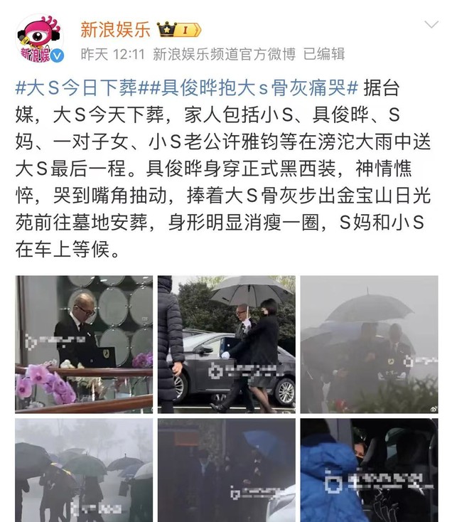 事情过去了四十多天大S终于要下葬了,这个时间一拖再拖最后却将安身之处定在了一个价值八千多元的小格子里,真是令人唏嘘……