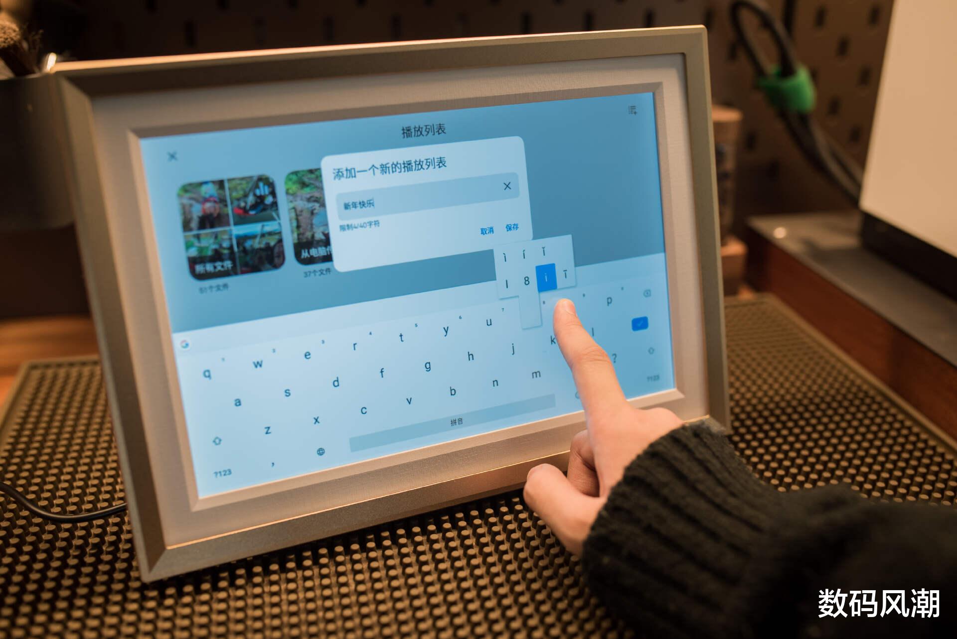照片/视频传送完成后,即可尽情享受回忆深处所带来的喜悦。D10在多媒体展现形式上也有诸多选择:播放间隔可从最短10秒长至24小时;正序/随机播放;多种切换效果;时间/天气/头像是否显示。脱离APP,依然可以在D10内置系统中完成不少整理工作,触屏反馈准确,即便是快速敲击输入法,也没有任何延迟的感觉。对于数码相框这一类非性能为主的设备而言,D10的整体完成度相当高,确实可以达到销量T1级别的水准。