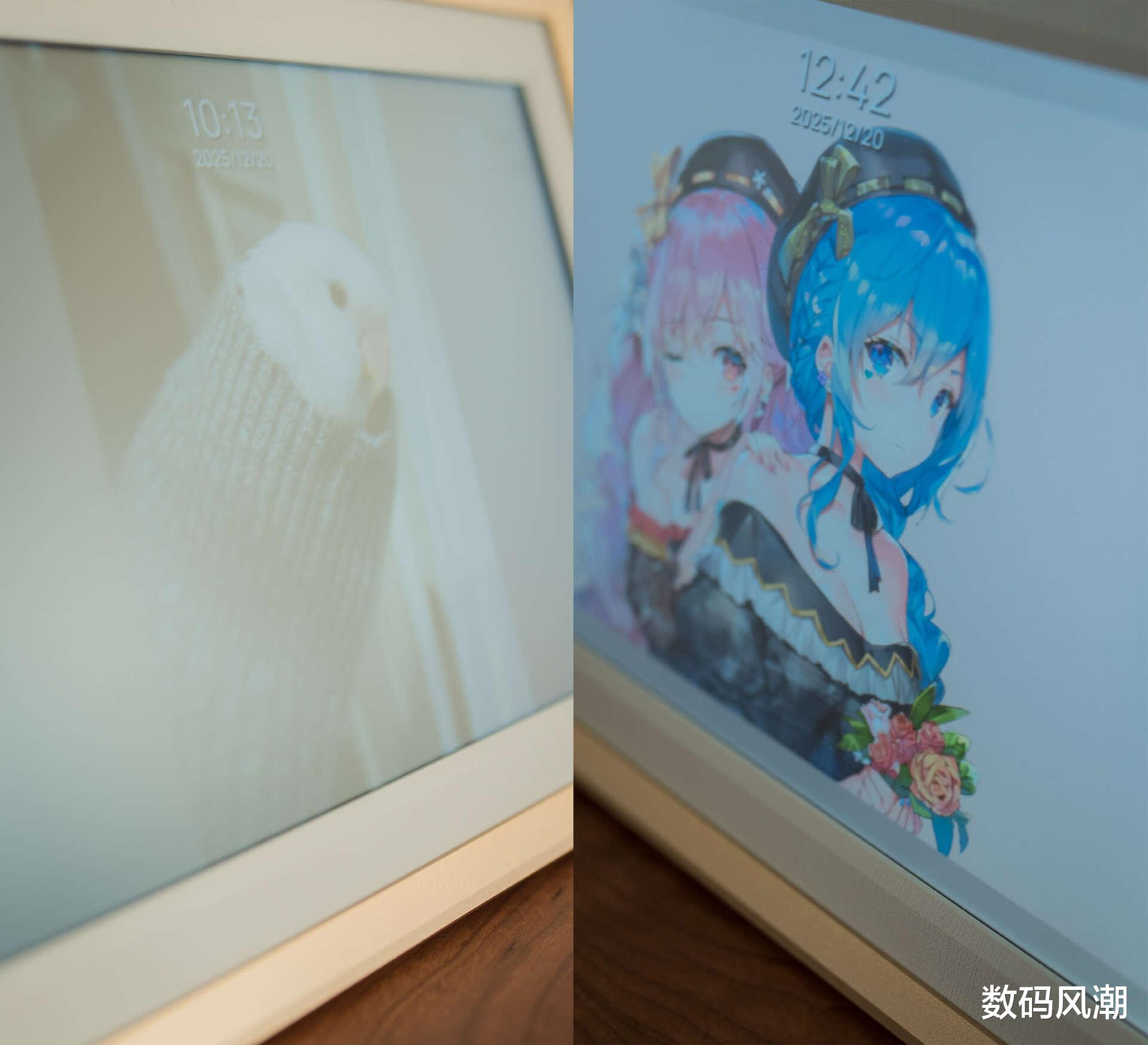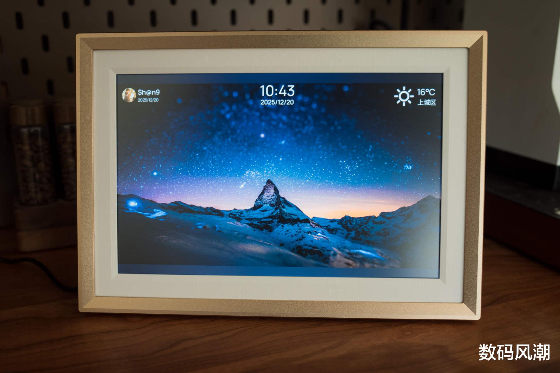 相比传统平板追求极致屏占比,数码相框有了宽边框,才让欣赏照片变得没有违和感。D10阿卓帕D10搭载的10.1英寸IPS大屏,结合颇具质感与手感的磨砂屏,让其在正面不同角度和距离观看时都有不错的观看体验。1280*800的分辨率在数据上不激进,但也不至于看到任何颗粒,清晰度完全没有问题,色彩表现同样不俗。