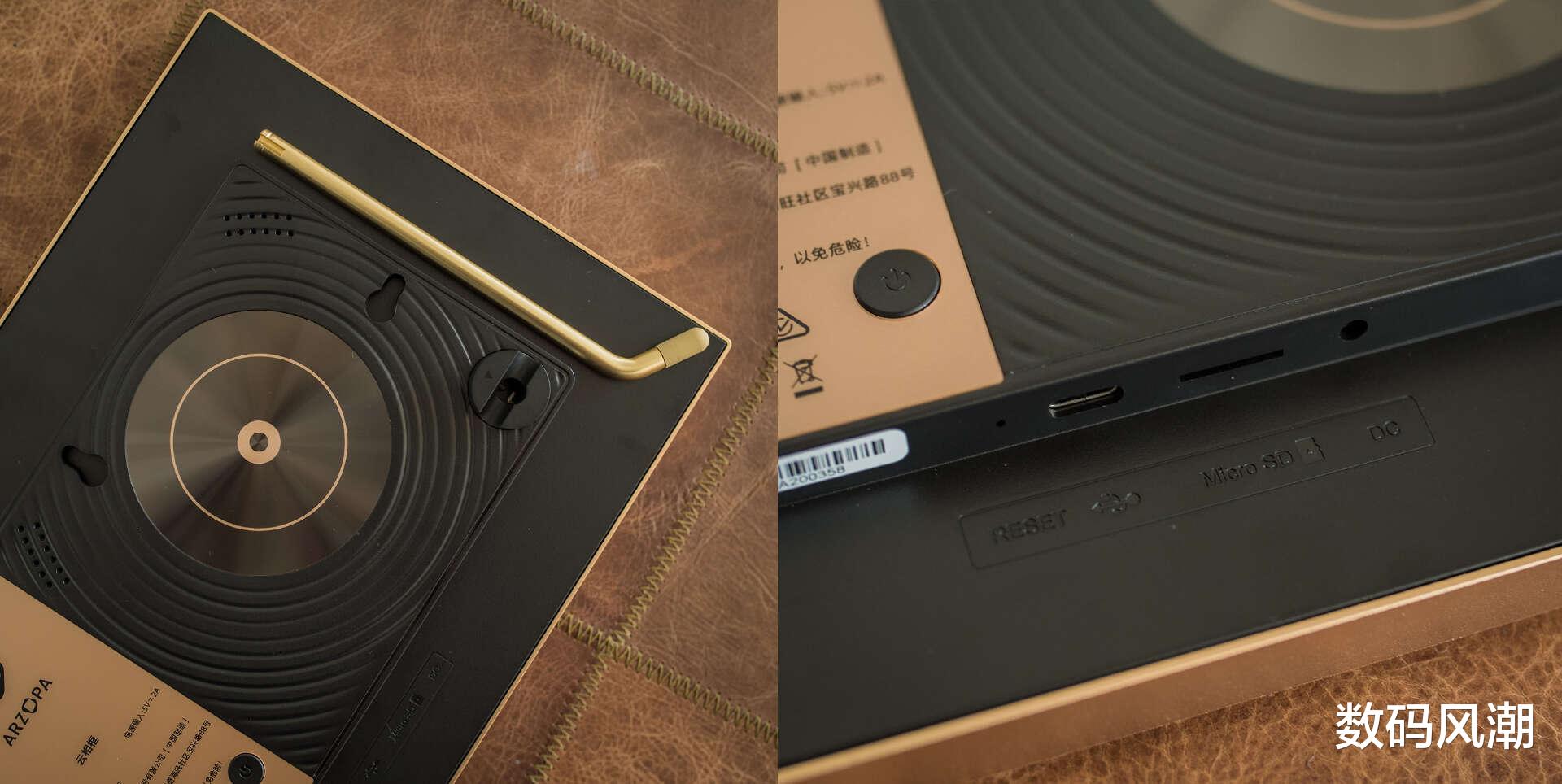数码相框的外观设计大同小异,更多差异在于用料选择和细节把控上。D10并没有因为基础版的定位而简化设计,整体轻奢香槟金铝合金边框质感到位,背面的黑胶唱片背板增添了一份复古与现代的交融。