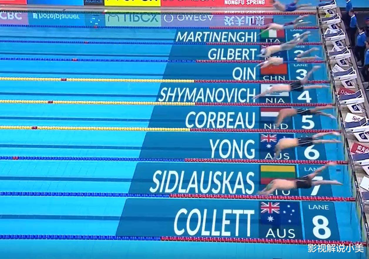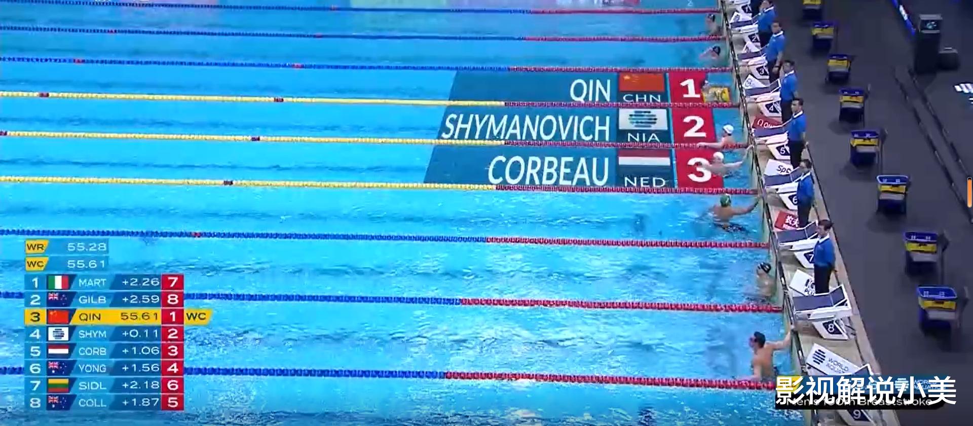 进入最后的冲刺阶段,覃海洋开始发力。他的手臂如同有力的螺旋桨,快速划动着水面,双腿奋力蹬水,推动着身体向前飞驰。他逐渐缩小与领先者的差距,在观众们的欢呼声中,一鼓作气反超对手,第一个触壁。白俄罗斯选手希马诺维奇以 55 秒 72 的成绩获得银牌,与覃海洋仅有 0.11 秒的差距,荷兰选手考比乌也紧随其后以56 秒 67 的成绩获得季军。覃海洋用出色的表现战胜了强大的对手。