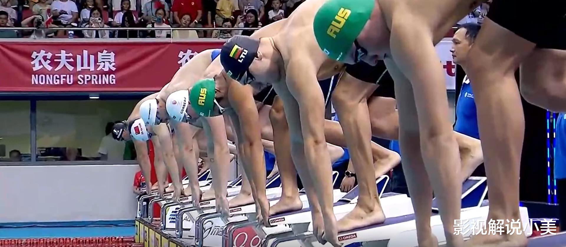 覃海洋站在出发台上,眼神坚定而自信。他的每一个动作、每一个表情都透露出一种王者风范。随着发令枪响,他如离弦之箭般冲入水中,瞬间激起层层浪花。