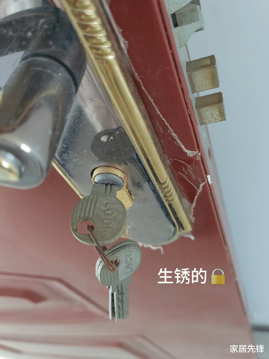 还有家里的锁芯儿,如果已经生锈了,开门的时候非常吃力,我们也可以用钥匙蘸取少量的废油插进锁孔里,插进去以后左右拧动一下,钥匙起到了一个润滑防锈的作用,开关门以后顺畅不少,再也不用花钱换新锁了。